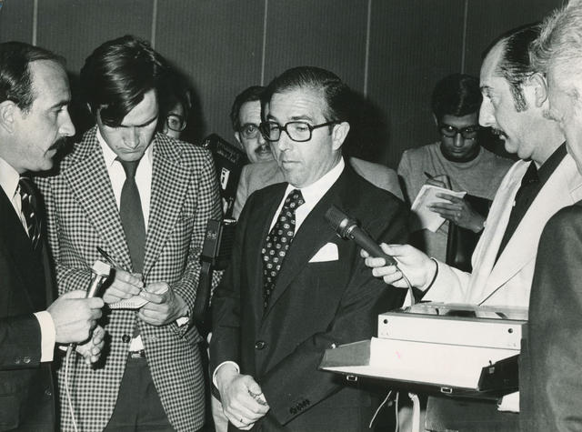 El Ministro de Asuntos Exteriores, Marcelino Oreja, acompañado del Embajador de España ante la Santa Sede, señor Fernández Valderrama