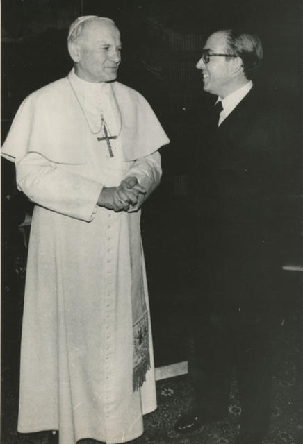 El Ministro de Asuntos Exteriores, Marcelino Oreja, en audiencia con el Papa, Juan Pablo II