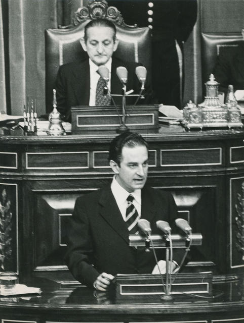 Landelino Lavilla, Ministro de Justicia, durante su intervención en el Pleno de las Cortes