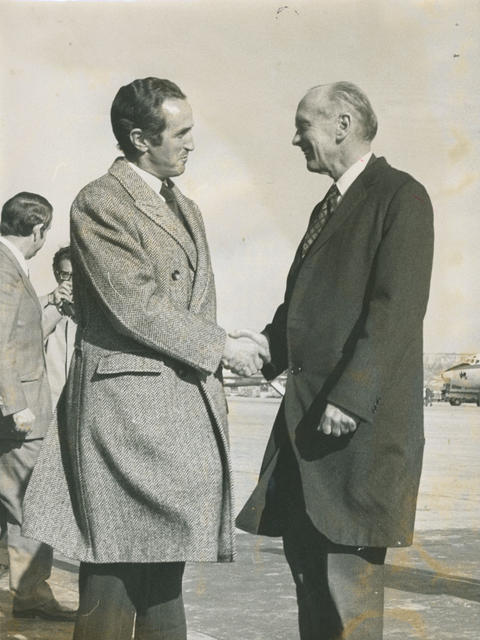 Fotografía obtenida en el aeropuerto de Barajas con motivo de la llegada del Secretario de Estado para Negocios Extranjeros de la Gran Bretaña, Sir Alec Douglas Home, para entrevistarse con el Ministro López Bravo