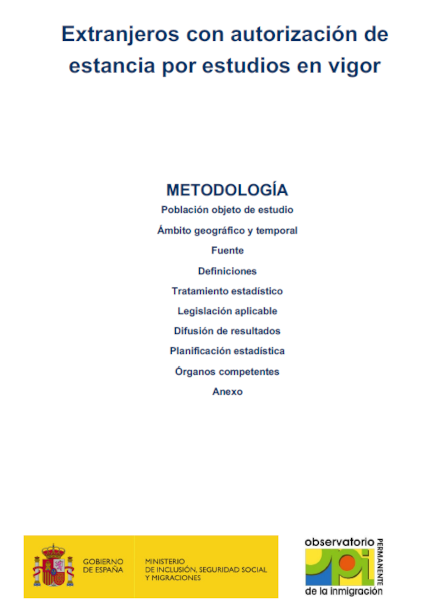 La Estadística de Extranjeros con autorización de estancia por estudios en vigor se elabora a partir de ficheros extraídos del Registro Central de Extranjeros y muestra el número de personas nacionales de terceros países (no UE-AELC) que en la fecha de referencia tienen una autorización de residencia en vigor por motivo de estudios, movilidad de estudiantes, prácticas no laborables o servicios de voluntariado, y los familiares de estudiantes que han obtenido una autorización de estancia vinculada a aquellas o aquellos.